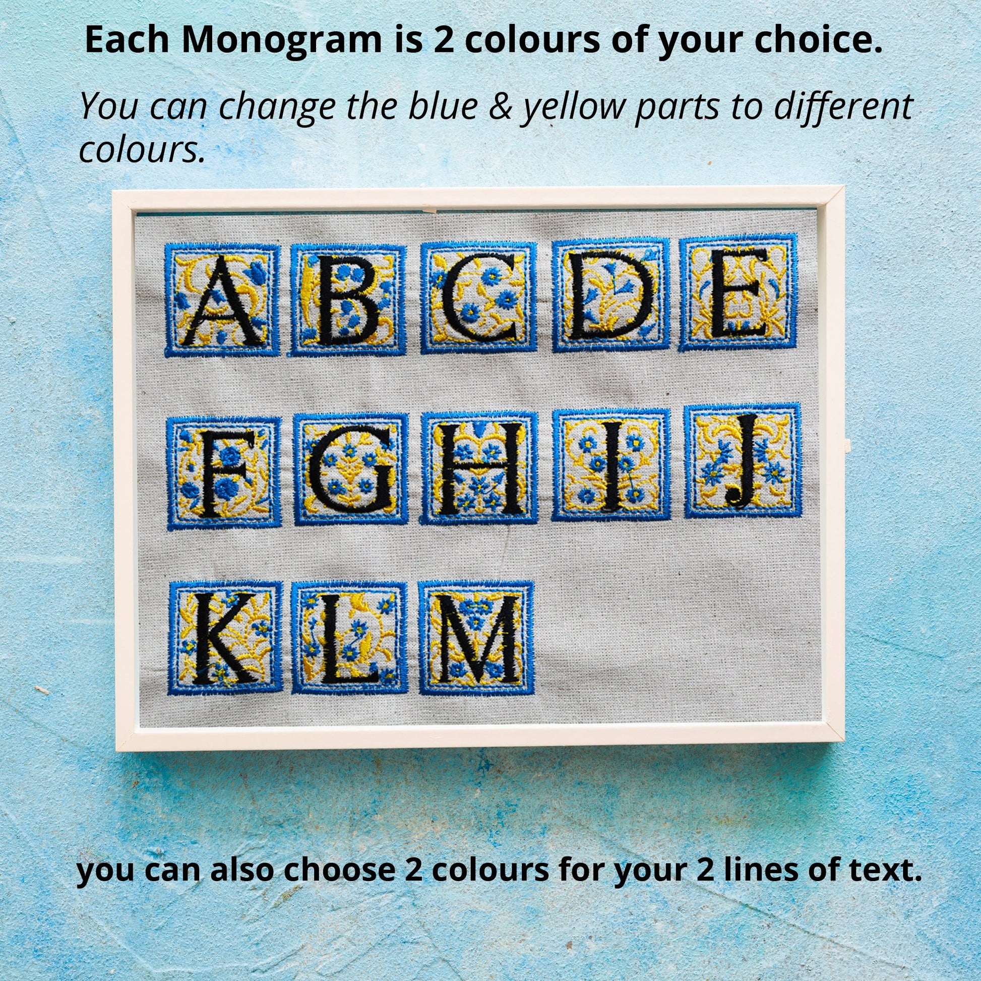 simply choose a combination of four colours for your design. Two colours for the monogram and two colours for your text.
